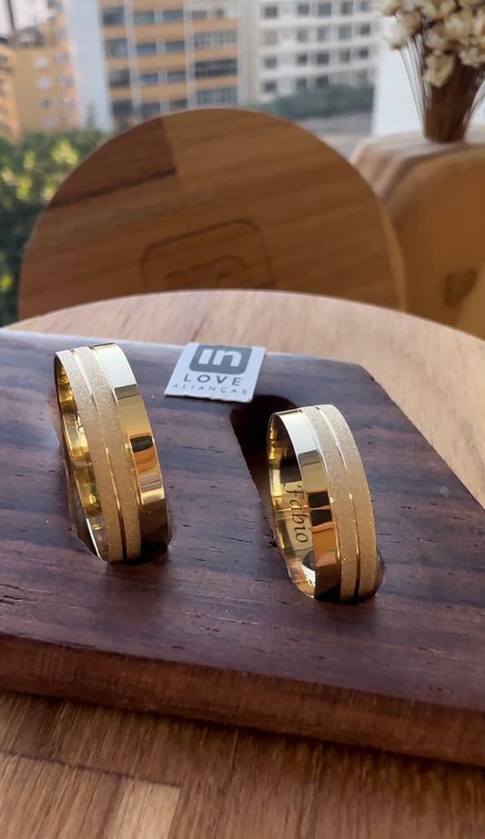 Alianças de Casamento em Ouro 18k - Modelo Miragem Duo | 6mm | 12x R$1.165.83